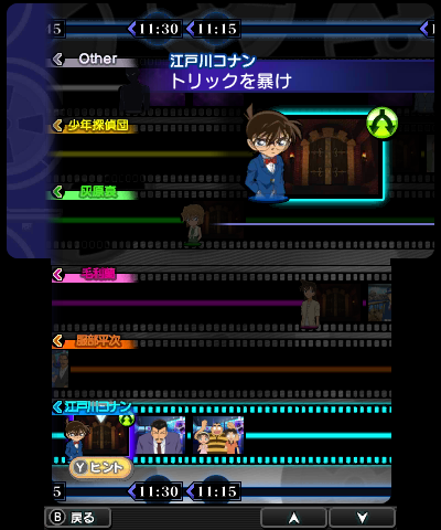 The timeline of story events screen in "Detective Conan: Marionette Symphony".