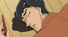 Takagi and Megure arrive to help Shiratori with the investigation. It's established that Soumei was killed around 2 PM, during the movie that they all went to, and that his murderer probably took Soumei's spare key and locked the apartment to try fooling the police. Megure says that the killer was most likely Kasakura's stalker, who beat Soumei to death to get him out of the way, but then he turns and says that the other possibility is that Kasakura herself killed him. Shiratori mentions how she was sitting next to him, but Megure says that the apartment is less than five minutes away by car or taxi so it's not unplausible to have her as a suspect since she could've easily pretended to go to the restroom. Having dozed off at some point, Shiratori's testimony isn't foolproof.