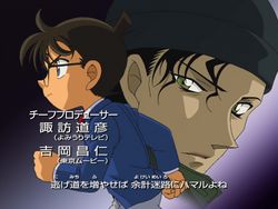 - In the mask removal segment, Yusaku removes his Night Baron Mask, Yukiko removes her Disguise from The North Star No.3 Express Leaving Ueno, and Haibara removed a Conan Edogawa Disguise, which may have came from the Desperate Revival arc, when she was disguised as him.