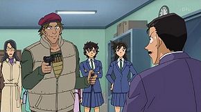 Sera asks Ran if she can come over to talk to Conan. Once there, she learns Conan is at Agasa's with the Detective Boys and the fact Conan is with Kogoro on every case. They are soon interrupted when a gunman strapped with bombs and three hostages are brought into the agency.