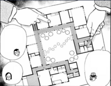 At the treatment room, Ran tells Tomoaki that her skills with a bandage comes from constantly having to treat a rambunctious friend as a child. She then accidentally cuts herself with a pair of scissors. As Tomoaki takes her had to examine, Ran blushes and prepares to say something to him. At that moment, Conan and the police arrive to request their simulation. Conan checks the floor plans and finds where Hikaru previous broke the vase. He has an epiphany but is distracted by Ran's relation to Tomoaki.