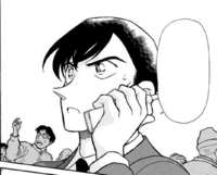 Yumi notices that Takagi has arrived. He gets out of his car, his attire sparking shock in the police. He approaches the group to the shouts of encouragement from the Detective Boys, but Sato coldly slaps him, telling him to remove his disguise. She storms off, leaving Takagi clueless about his fault. Yumi and Shiratori tell him that his disguise looks similar to a former detective who was in the 1st Division for just seven days.