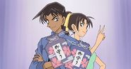 - Heiji & Kazuha appear together at the very end of the opening when a giant group photo is being taken of the main characters.
